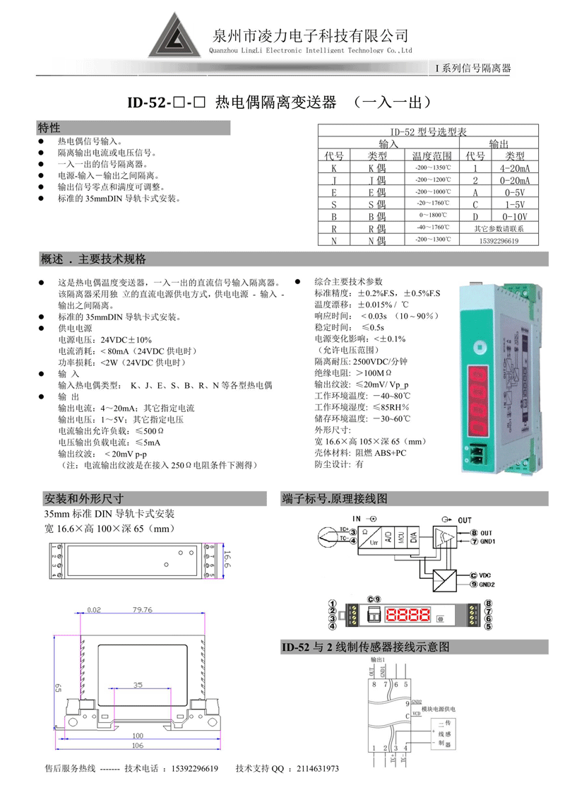 ID-52 热电偶温度隔离变送器(一入一出)