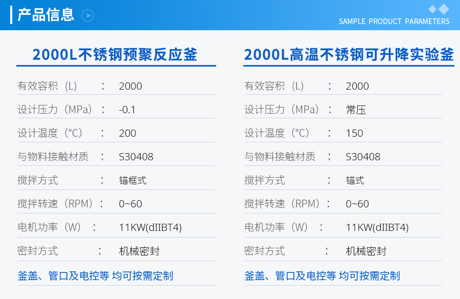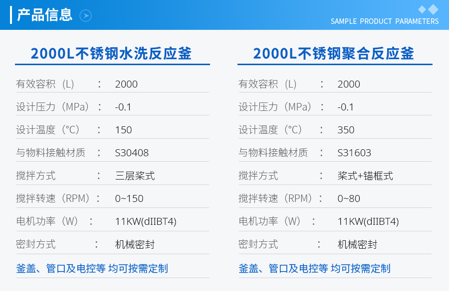 | 主要材料 | 釜體材料主要采用不銹鋼與碳鋼復合材質 S30408(304)+Q345R、S31603(316L) +Q345R、S32168(321)+Q345R, 也可是純不銹鋼材質,并可根據(jù)不同介質要求制作鈦材、鎳材、鋯材、哈氏合金、蒙耐爾合金等復合材質反應釜,也可根據(jù)客戶要求主要材料噴涂四氟PTFE/PPL。 | ||||||