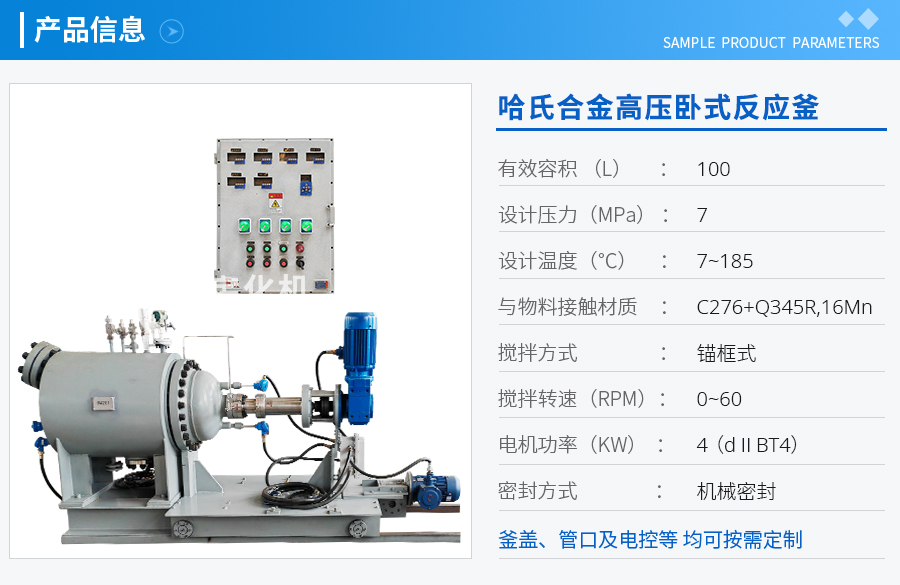 名稱:100L哈氏合金高壓臥式反應釜