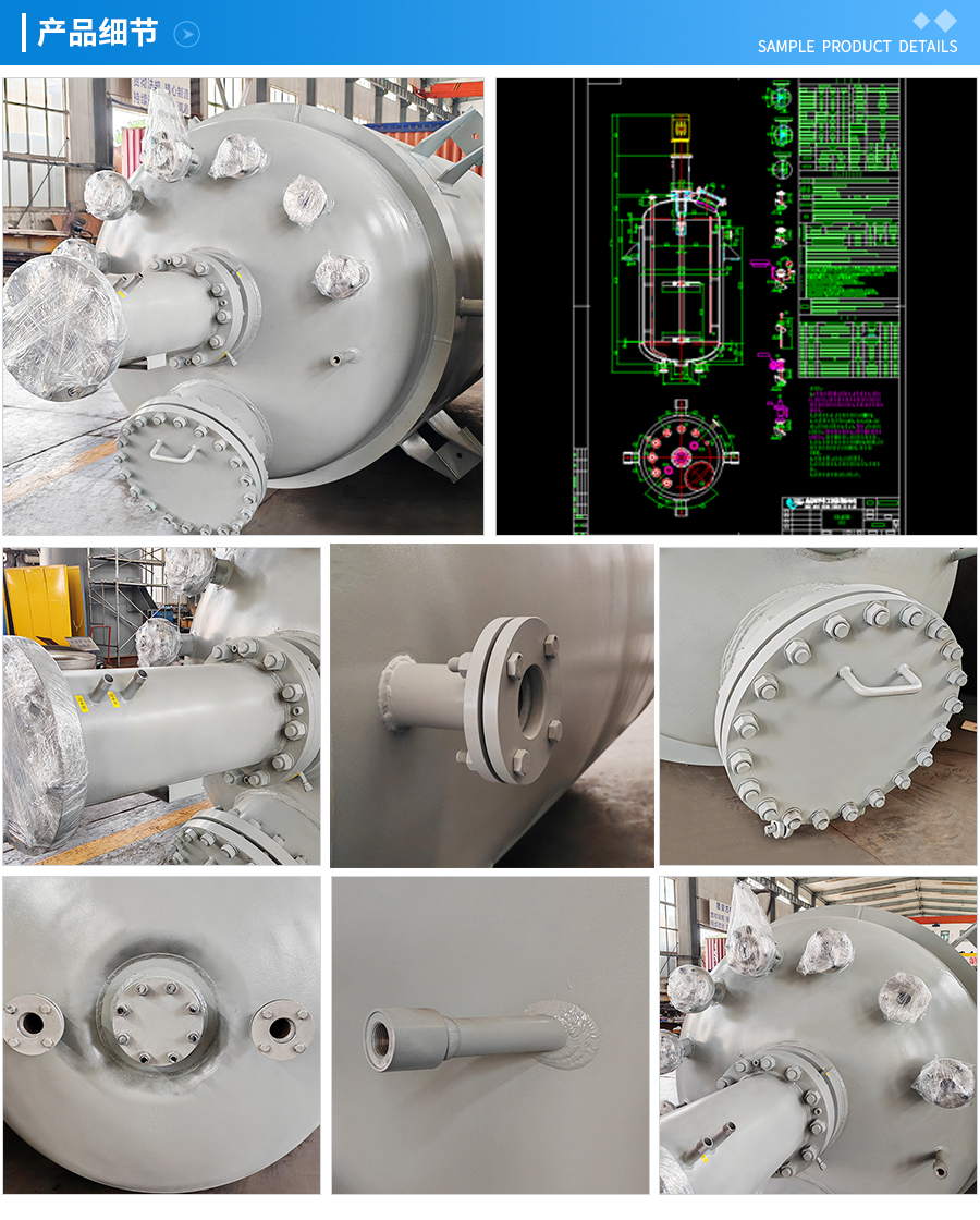 主要材料 釜體材料主要采用不銹鋼與碳鋼復合材質(zhì) S30408(304)+Q345R、S31603(316L) +Q345R、S32168(321)+Q345R, 也可是純不銹鋼材質(zhì),并可根據(jù)不同介質(zhì)要求制作鈦材、鎳材、鋯材、哈氏合金、蒙耐爾合金等復合材質(zhì)反應釜,也可根據(jù)客戶要求主要材料噴涂四氟PTFE/PPL。